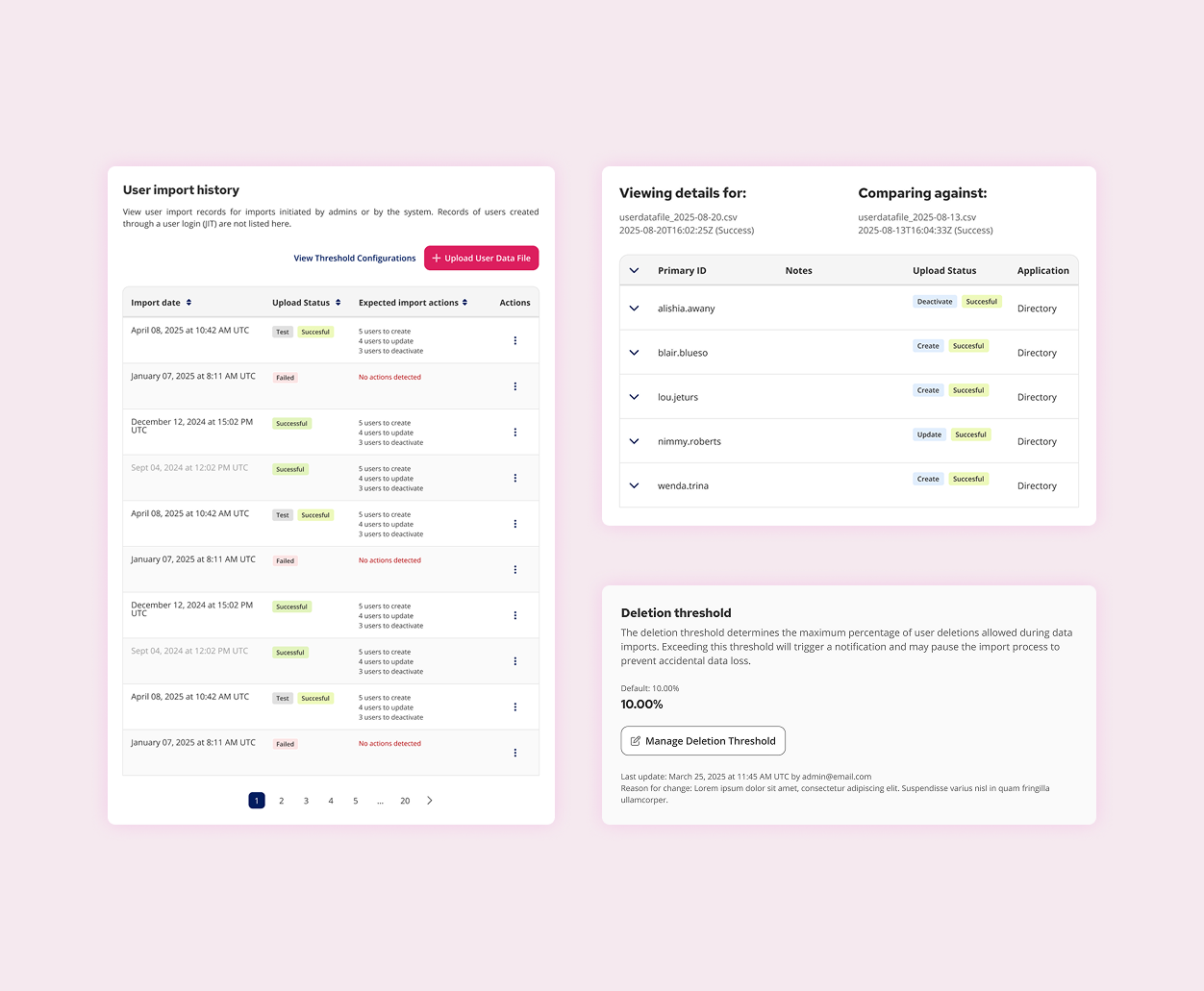 Configuration of threshold overrides for user data file uploads to prevent catastrophic errors.