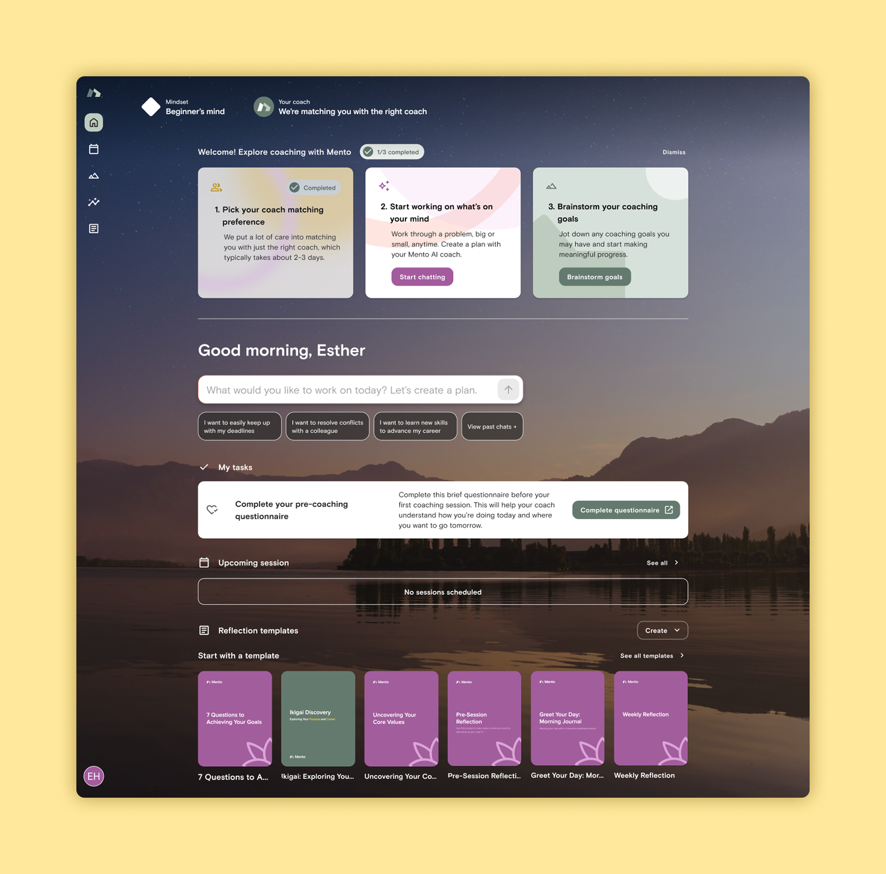 Our Mento AI coach is our latest feature, so why not place it front and centre and let it be your friendly concierge?