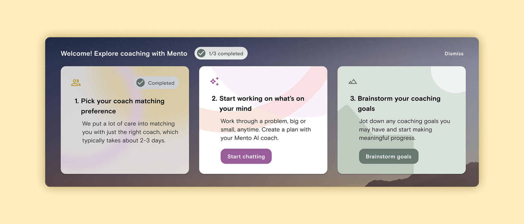 Despite being the entry point for every user, Onboarding always took a backseat to all other features on the Mento platform. A growing user base also meant a growing number of lost members who don’t know where to start or how to gain value from the platform. It was finally time to take a look at what’s (not) working and give the overall onboarding experience some love.