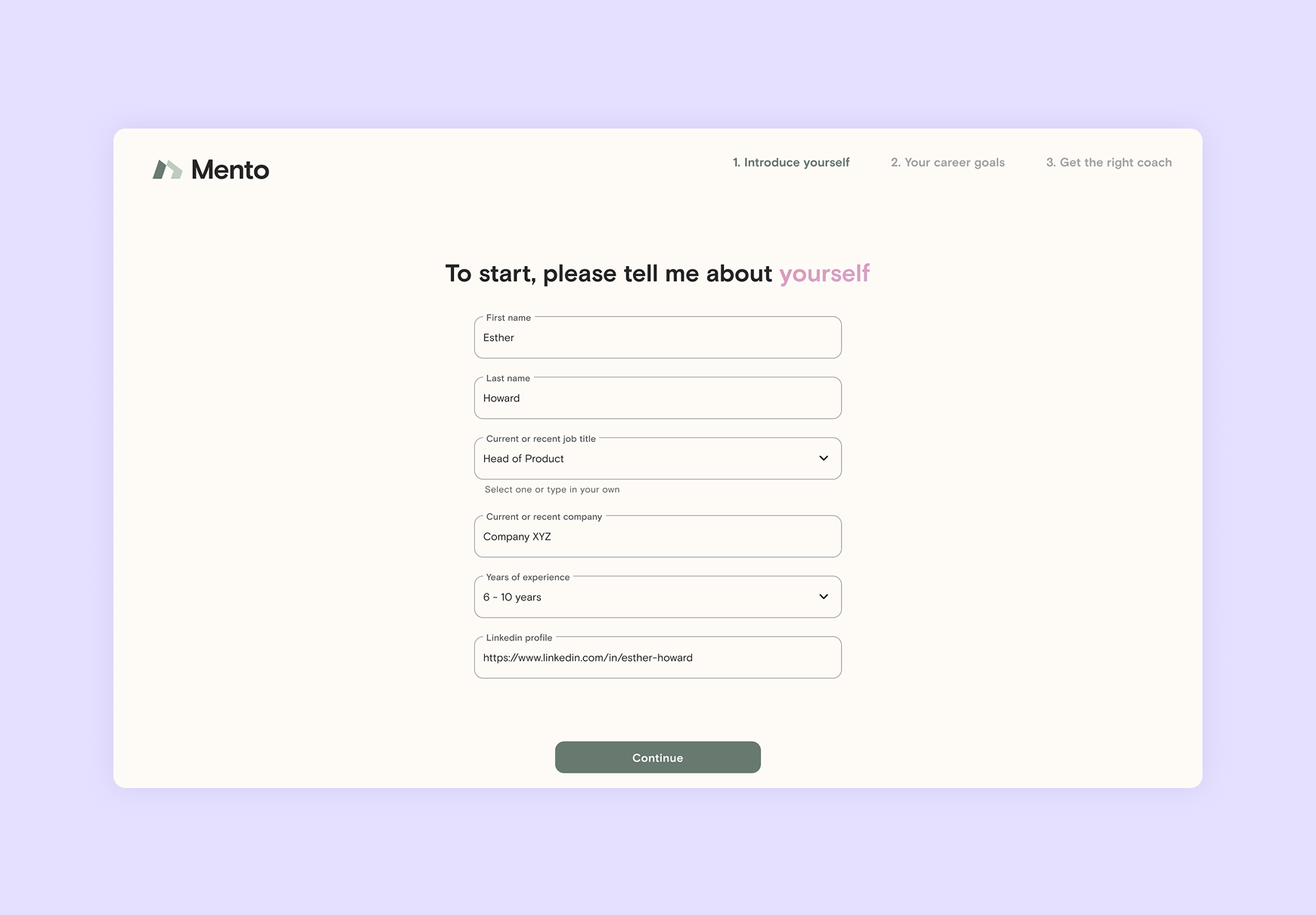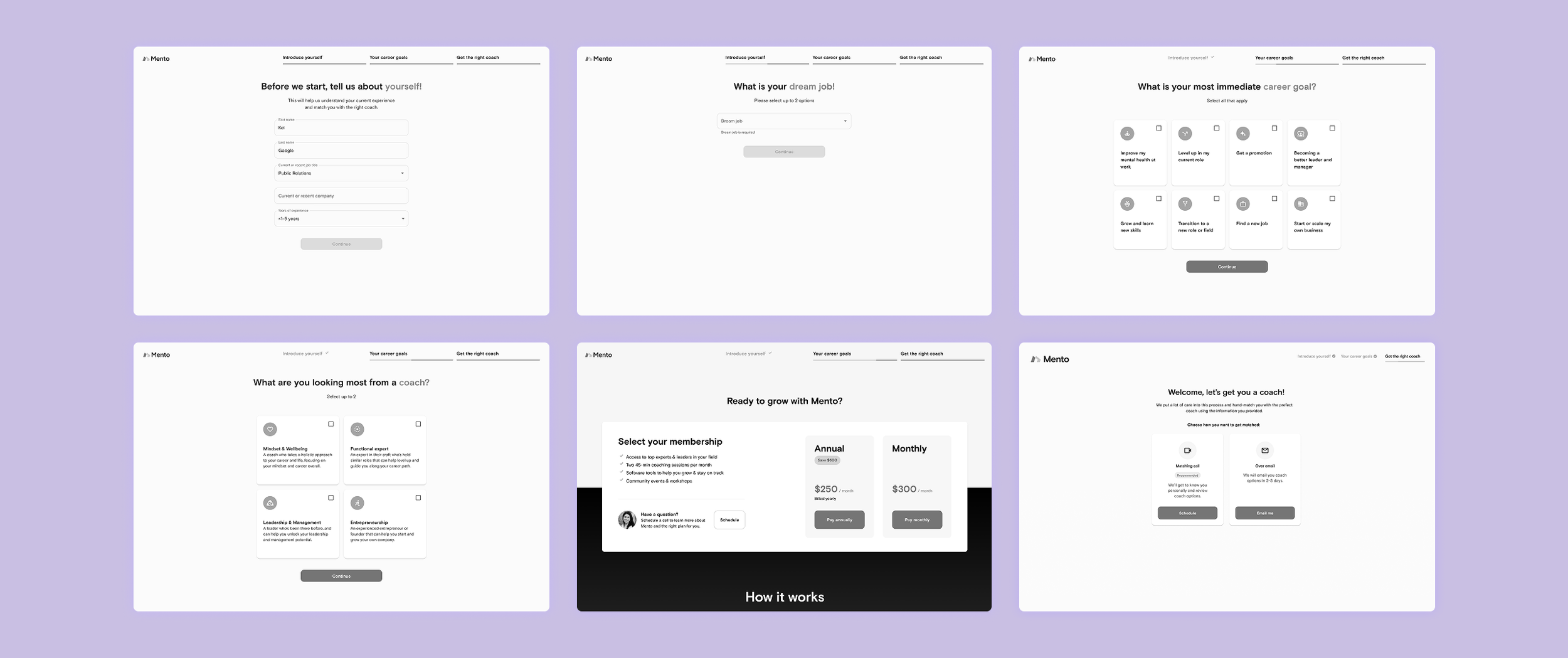 The signup process doesn’t clearly show users what Mento or coaching offers or why it’s valuable. The info collected isn’t used to improve the member’s experience on the platform.